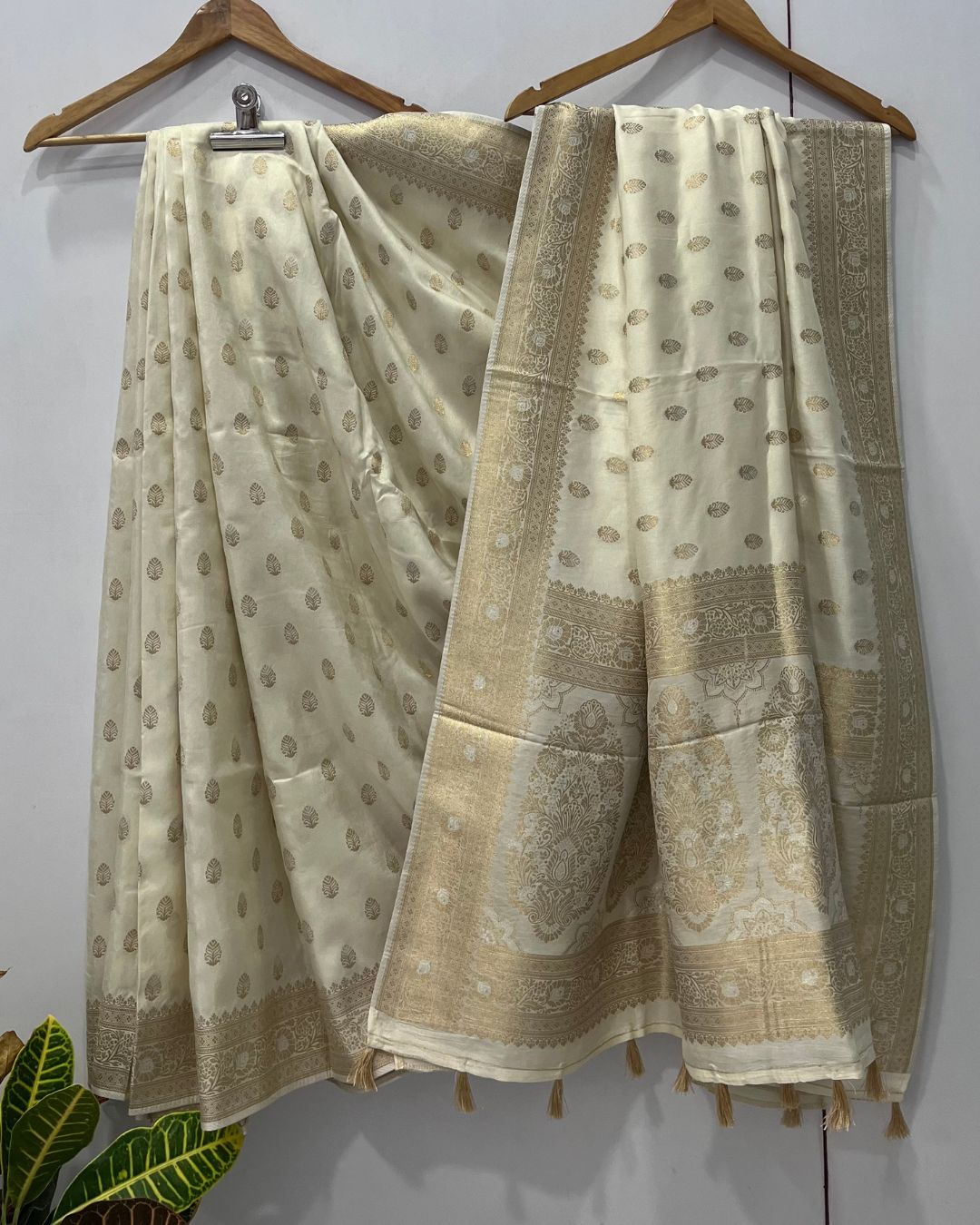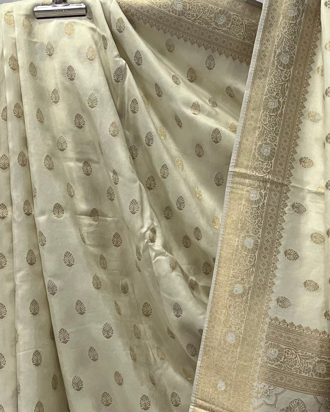 Description –The Banarasi Pure Crepe Katan Saree is a timeless blend of luxury and tradition, representing the rich heritage of Banaras (Varanasi). This exquisite powerloom saree is woven with the utmost care and precision, combining the lush texture of pure crepe with the traditional elegance of Katan silk. The saree’s pallu is a highlight, showcasing elaborate designs and rich zari work that add a striking contrast and elevate the overall look.