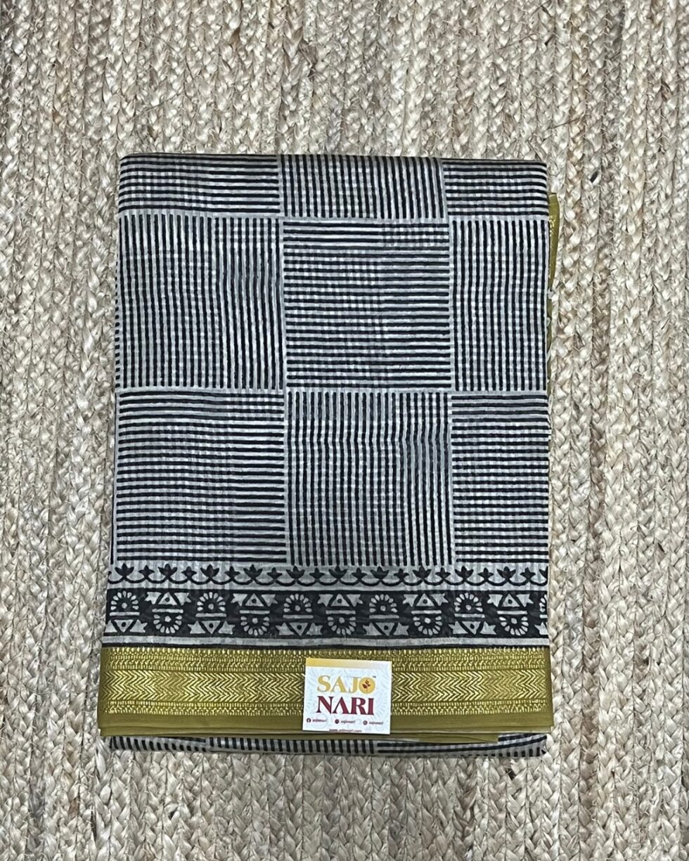 Hand Block Printed Maheshwari Silk Sarees, Natural colour used