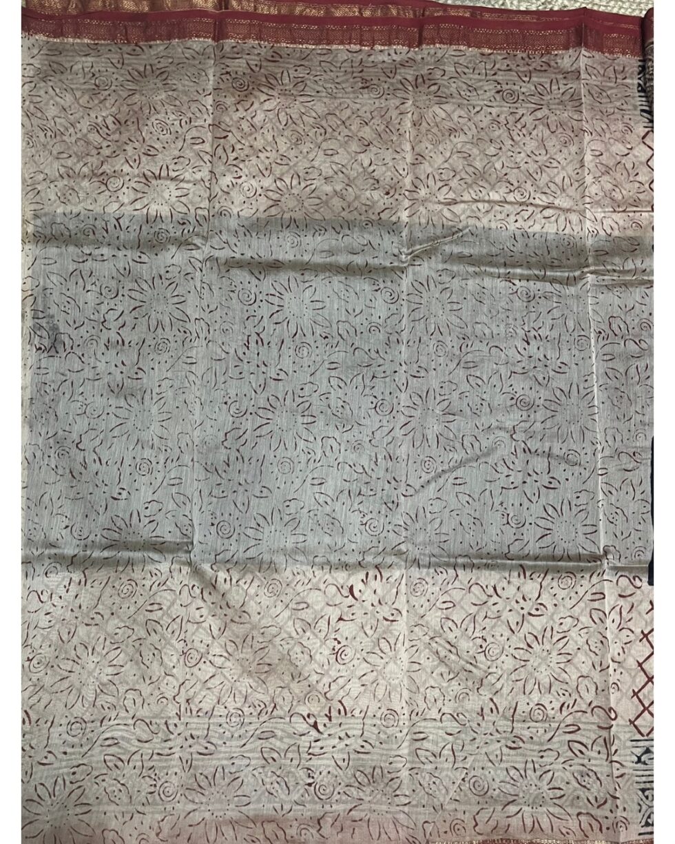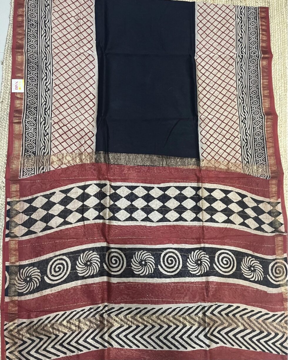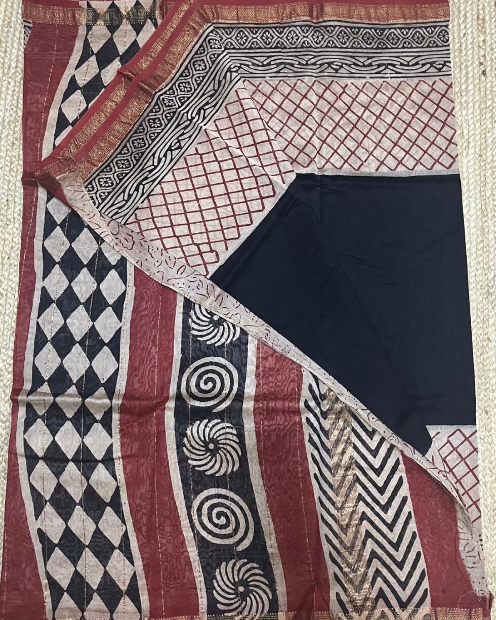 Hand Block Printed Maheshwari Silk Sarees, Natural colour used