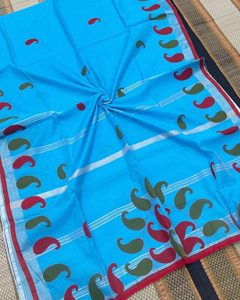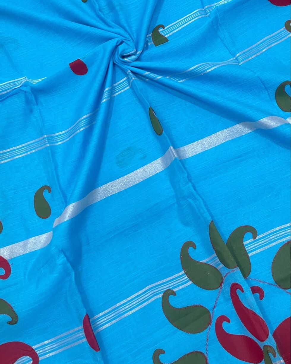 Description –Handloom Applique Saree – featuring intricate applique work that showcases the artisan`s exceptional skill. Most popular saree of Bengal.
