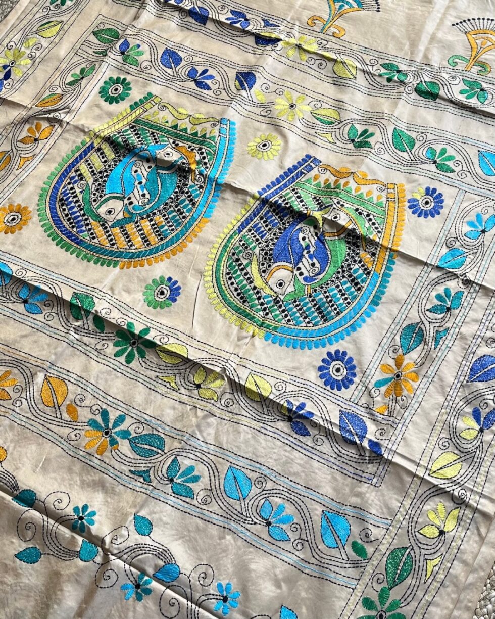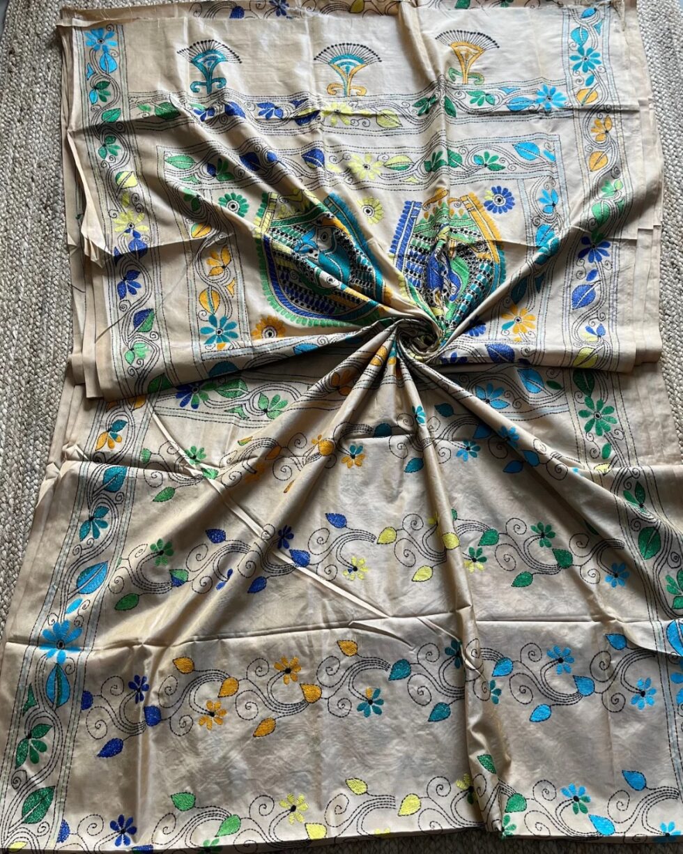 Handmade Kantha Stitch Saree