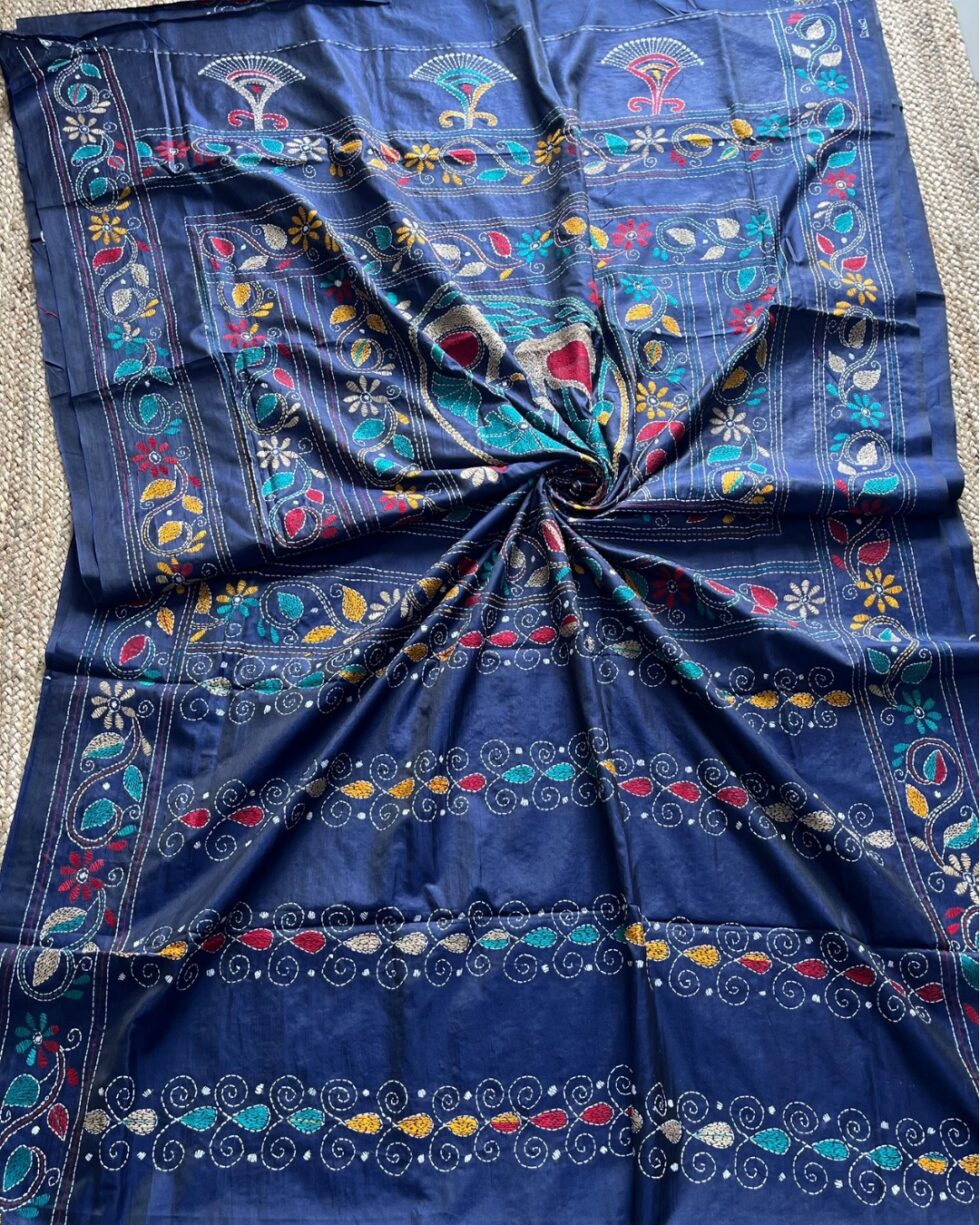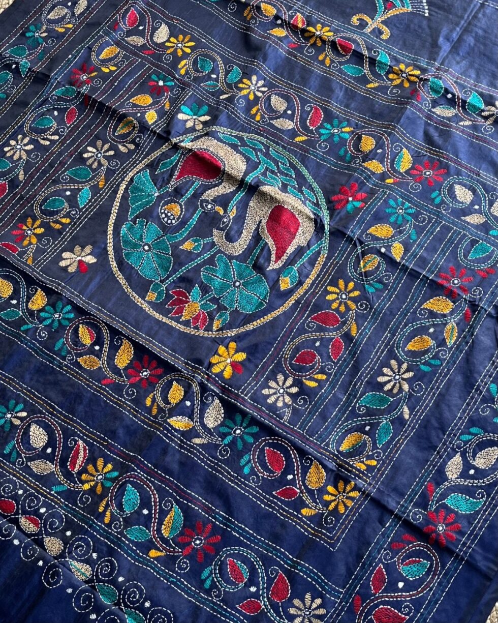 Handmade Kantha Stitch Saree