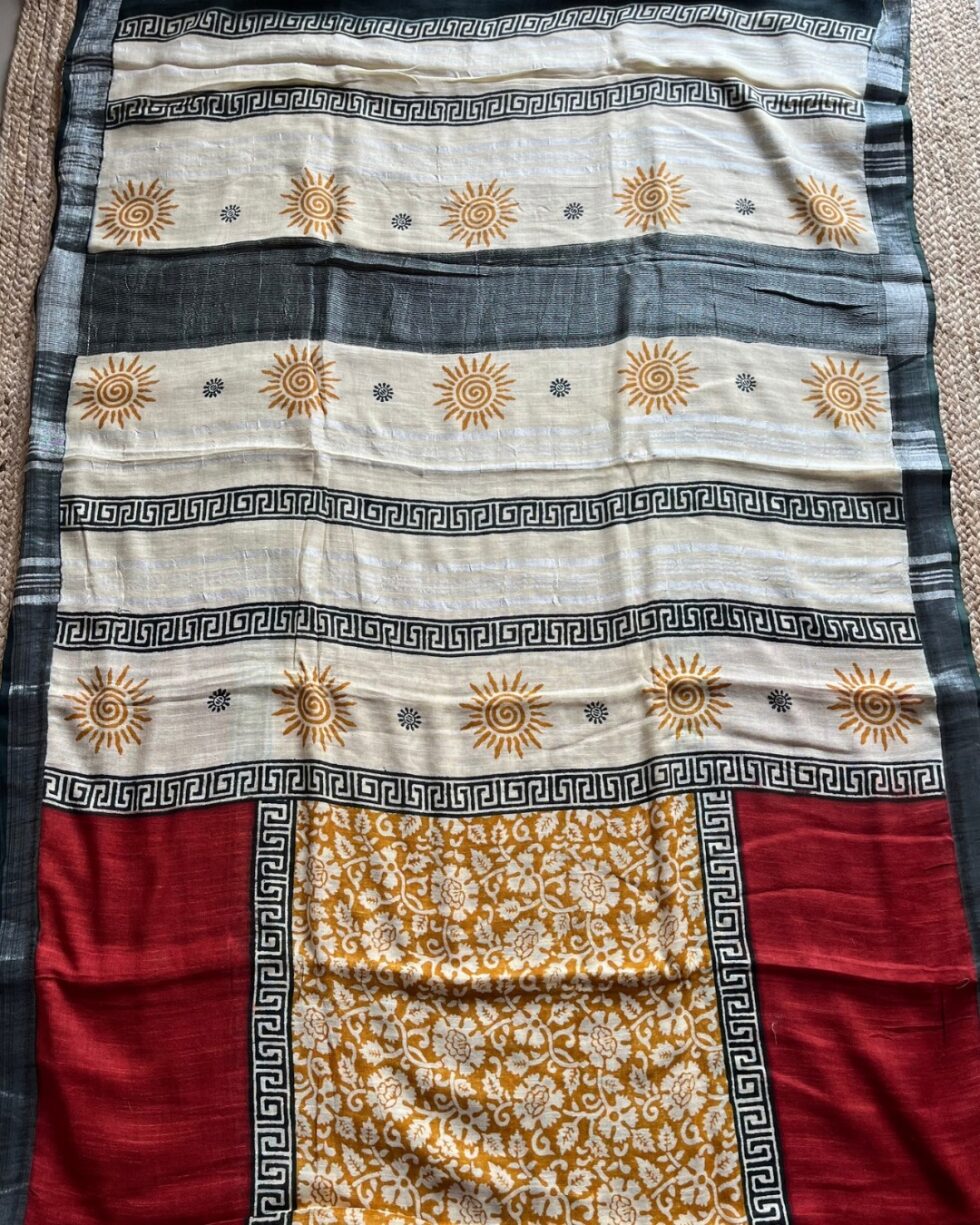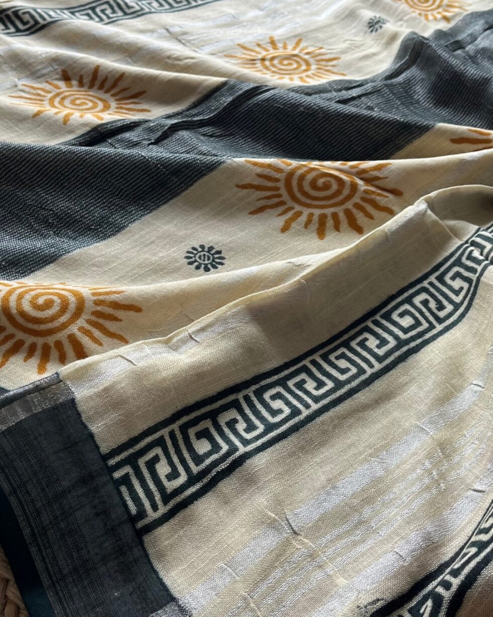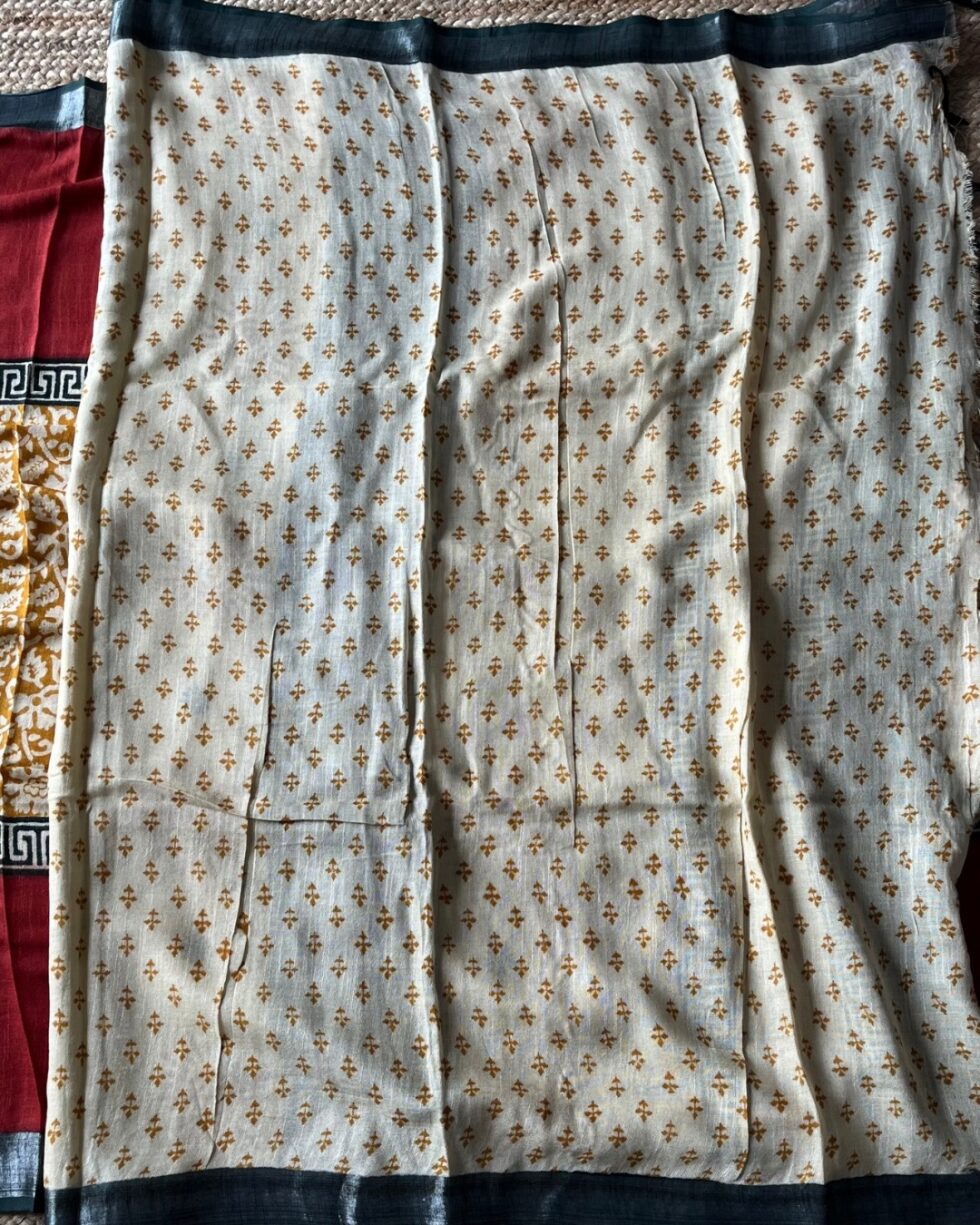 Bagru Putai Hand Block Print Linen Saree