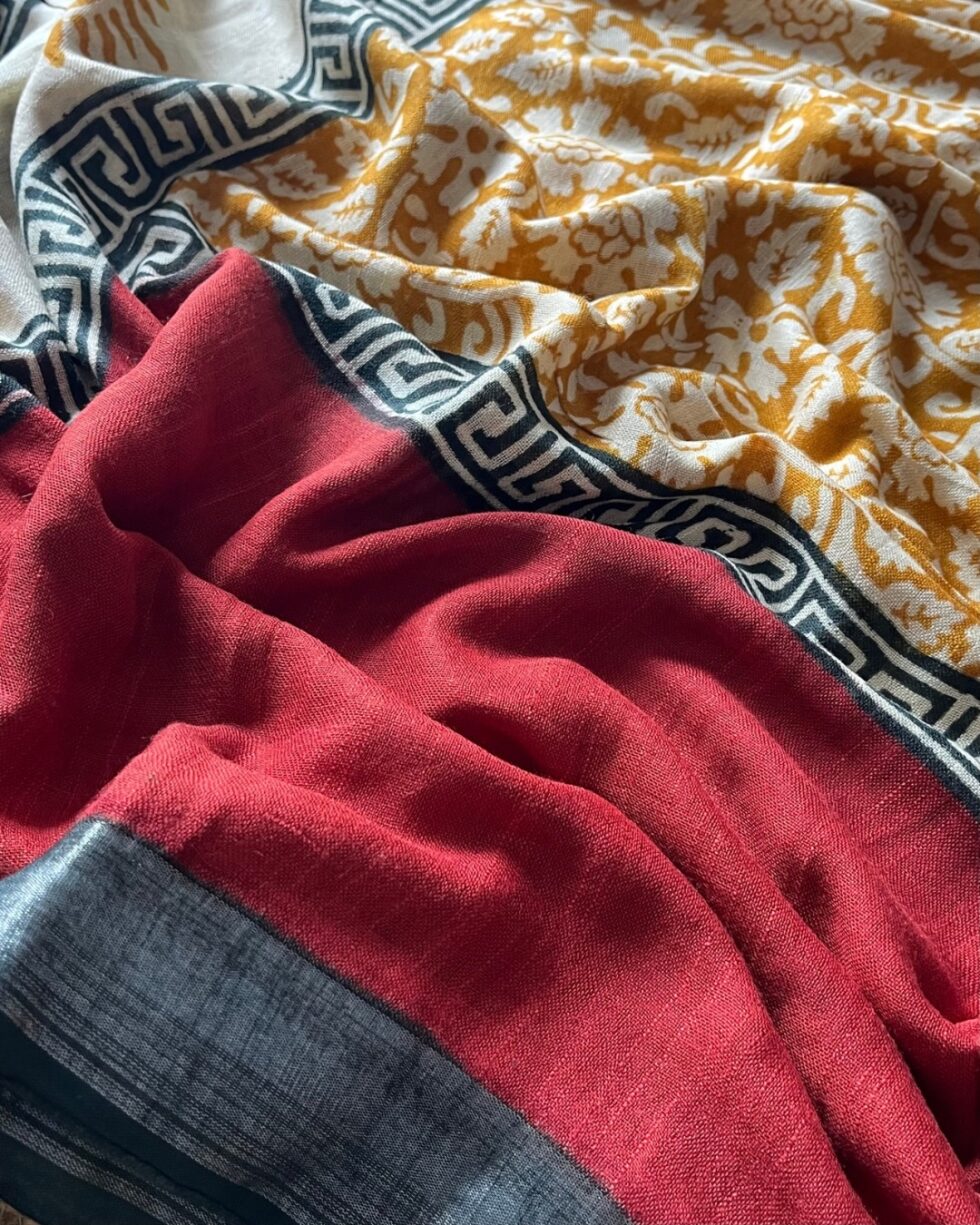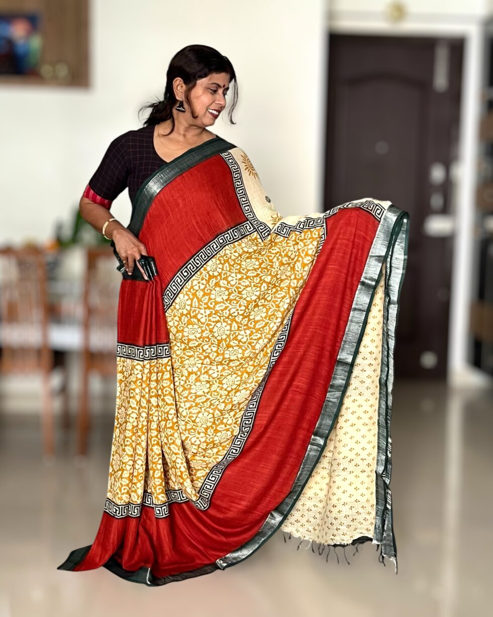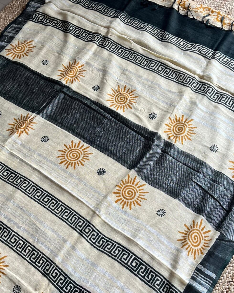 Bagru Putai Hand Block Print Linen Saree